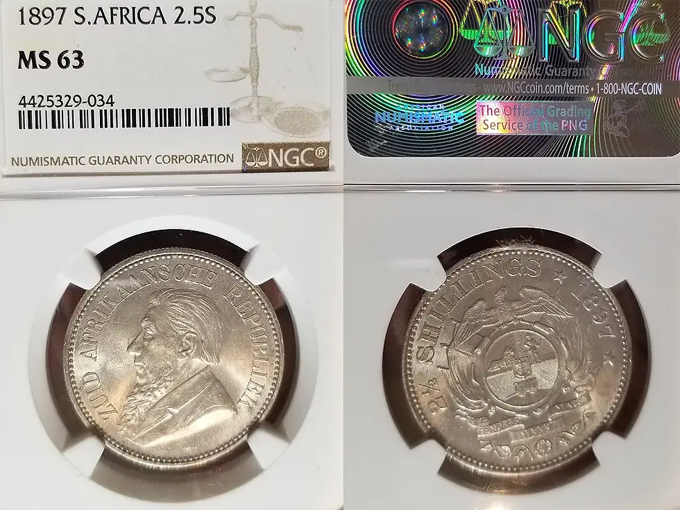 South Africa 1897 2 1/2 Shilling, Superb, NGC 63 PQ +++, Sharp Detail/Luster