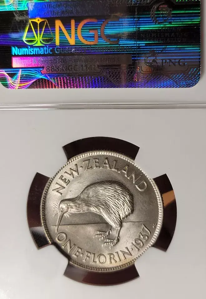 New Zealand 1937 Florin Extremely Rare Superb Gem NGC 64 PQ, Beautiful
