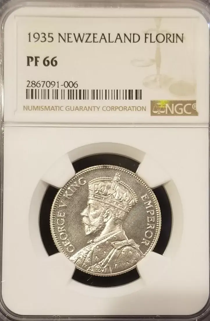 New Zealand 1935 Florin Extremely Rare Gem Proof NGC Pf 66 Mintage 364 coins