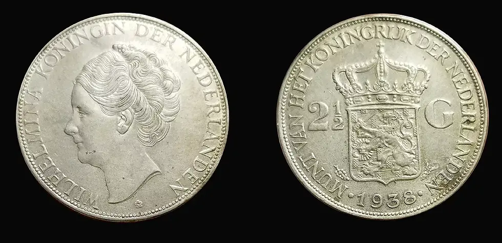 Netherlands 1938 2 1/2 Gulden, Rare Deep Hair Variety, Choice Unc.